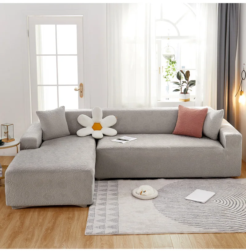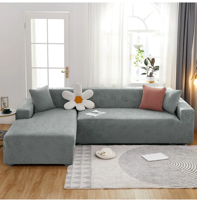 Чехол для дивана, жаккардовый, однотонный, эластичный, L-образный
