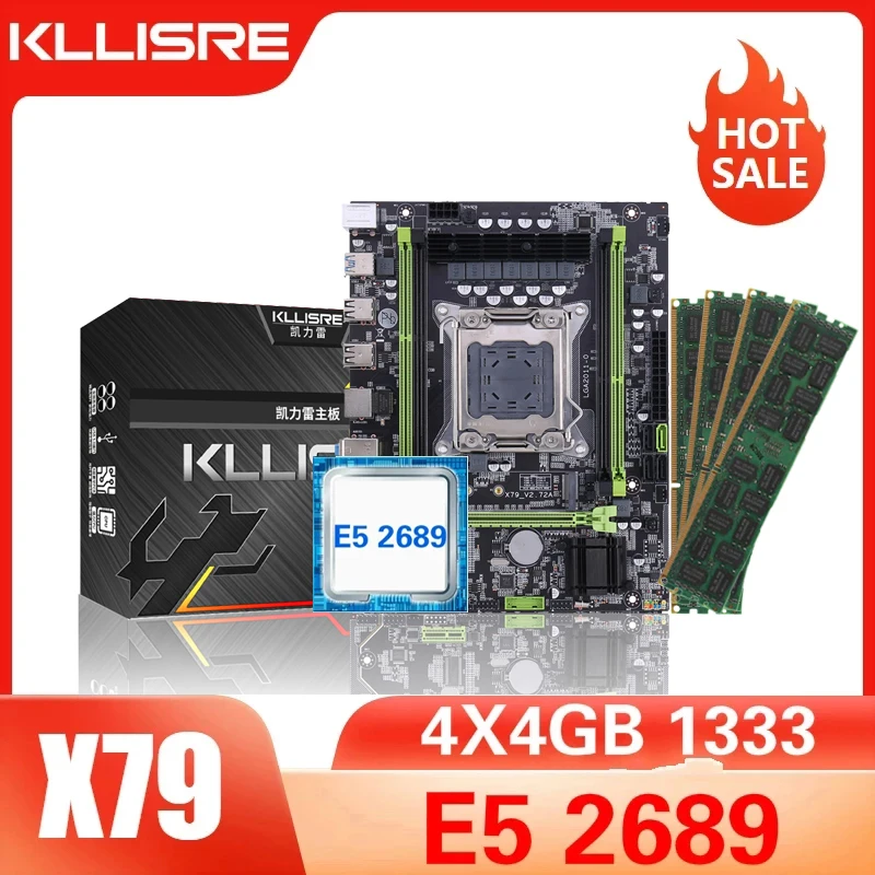Комплект материнской платы Kllisre X79, LGA 2011 E5 2689 CPU 4 шт. x 4 ГБ = 16 Гб памяти DDR3 ECC ОЗУ 1333 МГц