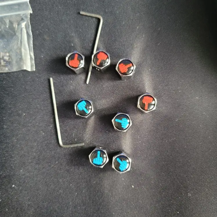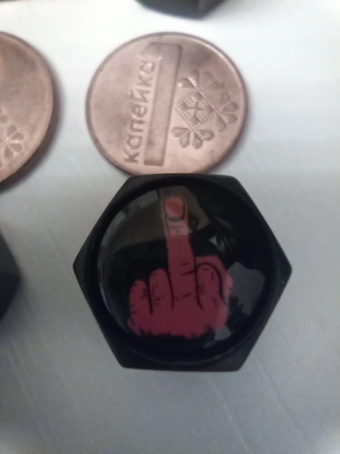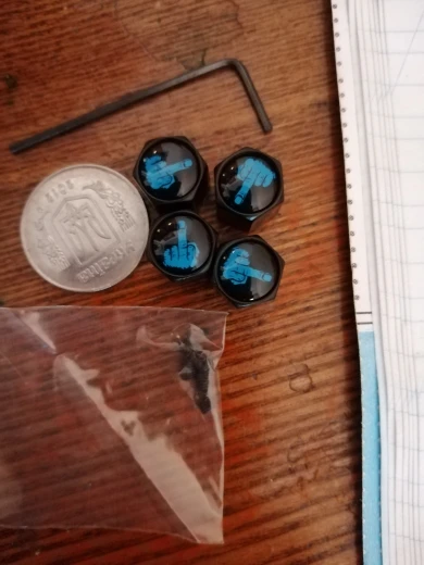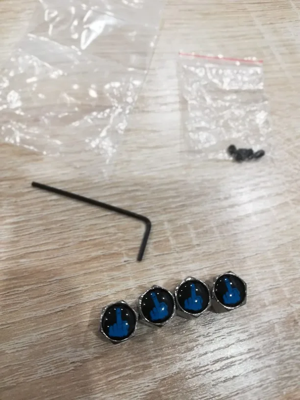 Заказал колпачки со средним пальцем синего цвета 03.11.2021. В ЕАО г Биробиджан прибыла 29.11.2021. Получил сообщение о доставке от SberLog. Посылку забрал 01.12.2021. Товар соответствует картинке и описанию как указано у продавца . Доставка бесплатная. Товар отслеживался до места вручения, т.е. на всем пути следования. Посылка пришла без видимых повреждений. Сами колпачки сделаны из металла, (тяжеленькие). В комплекте ключ шестигранник, для установки болтика (антикор). Ранее покупал другие, решил попробовать эти. Мне нравится. Упаковано следующим образом - сам набор вложен в прозрачный ЗИП пакетик и вложен в упаковочный пакетик с пупырышками. Рекомендую продавца и всем советую. Товаром остался доволен, мне нравится.