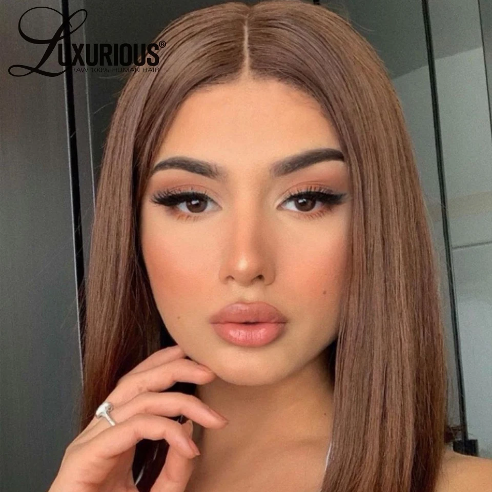 Светильник коричневый парик шнурка прямые бразильские Волосы Remy 150% 13x4Lace передний парик блонд, коричневый, Цветной парики из натуральных волос для Для женщин