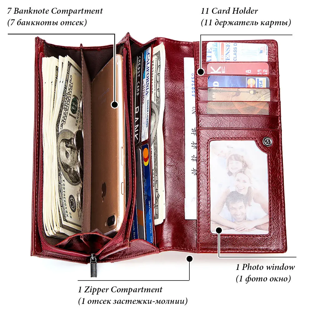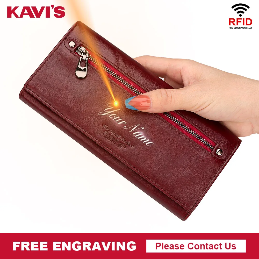 Женский кошелек KAVIS из натуральной кожи, Длинные Удобные кошельки, женский модный дизайнерский клатч, Дамский кошелек для денег, стильная сумка-держатель для телефона