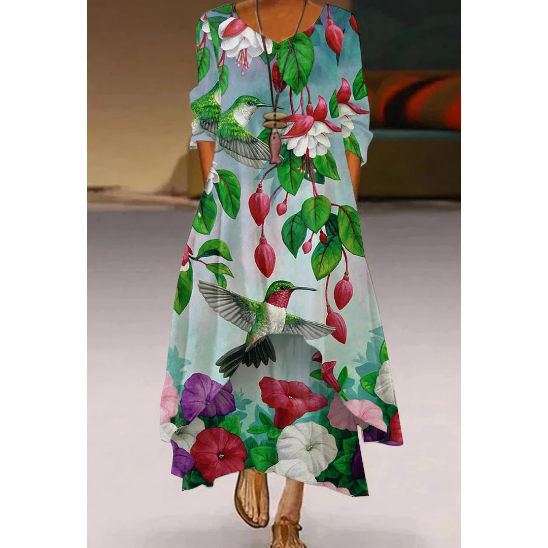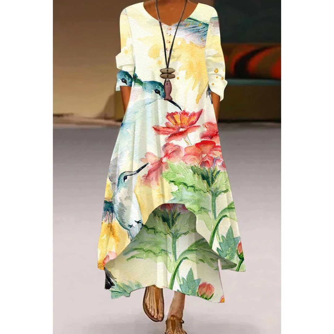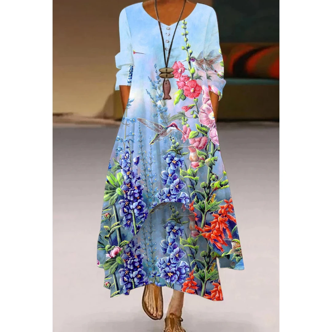 Женское длинное платье с цветочным принтом, Элегантное повседневное...