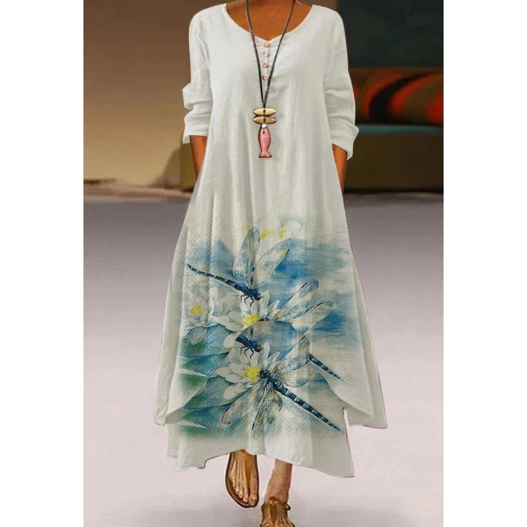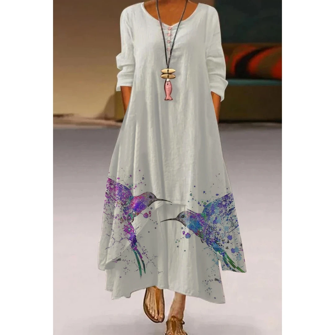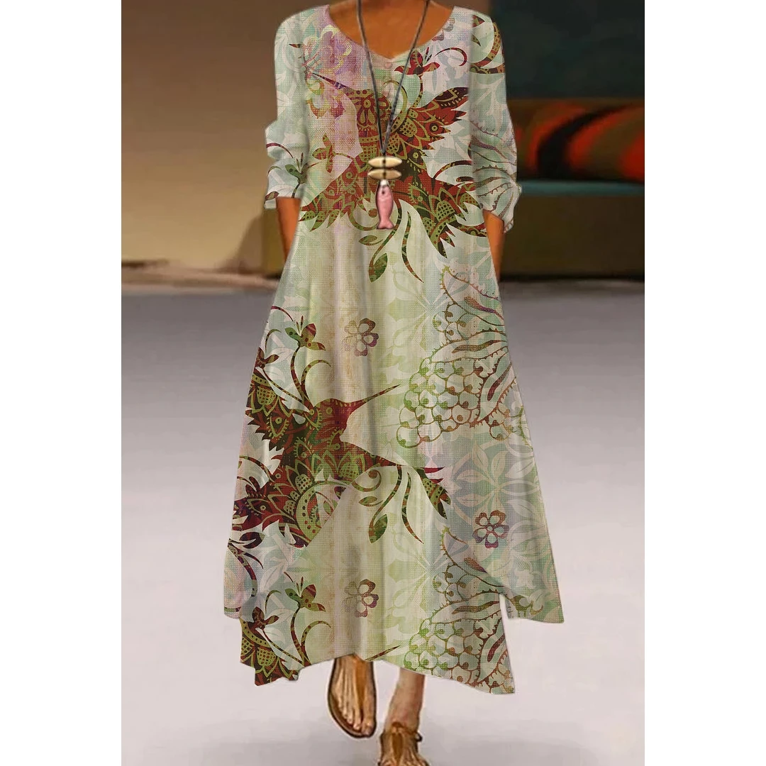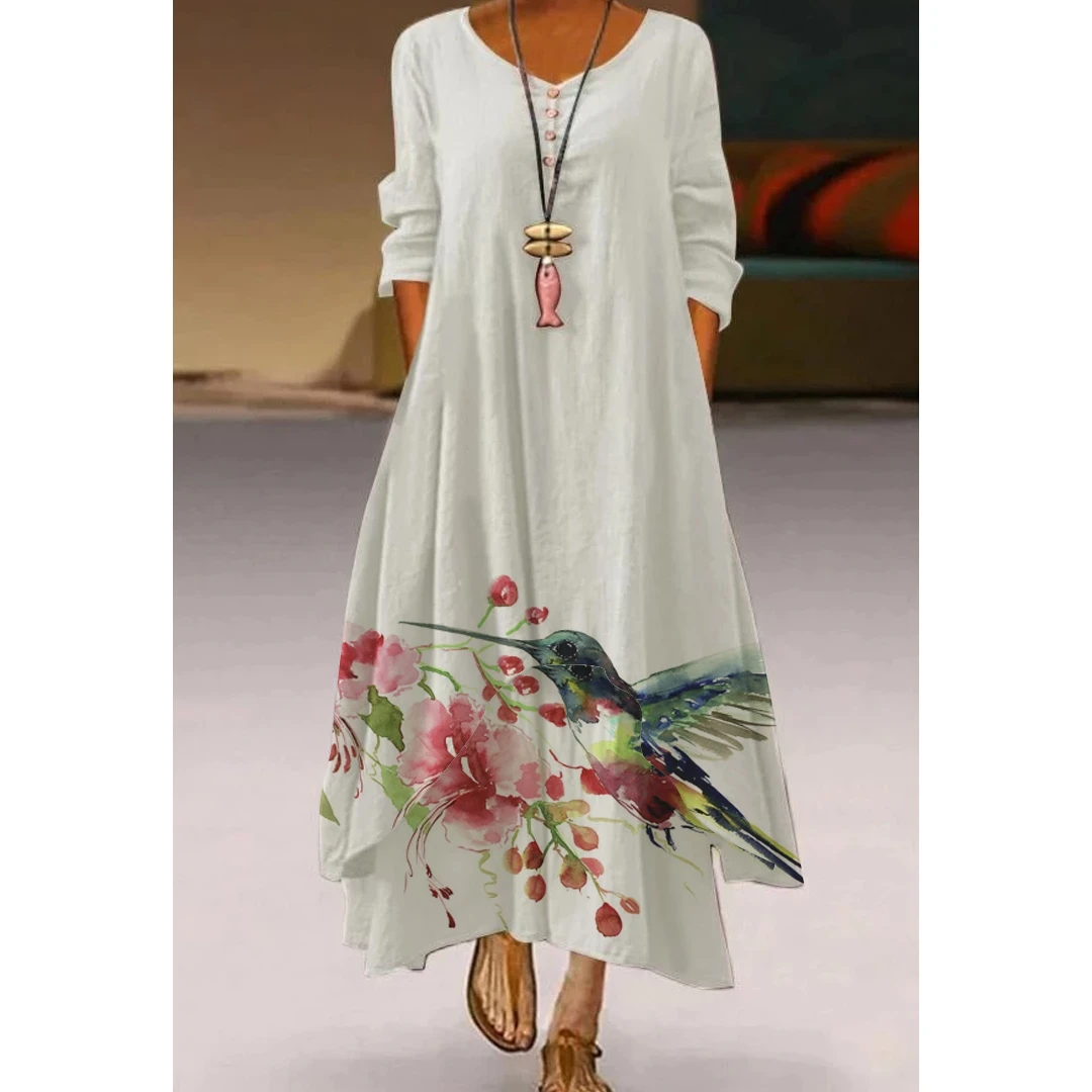 Женское длинное платье с цветочным принтом, Элегантное повседневное...