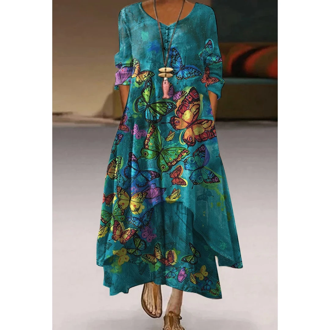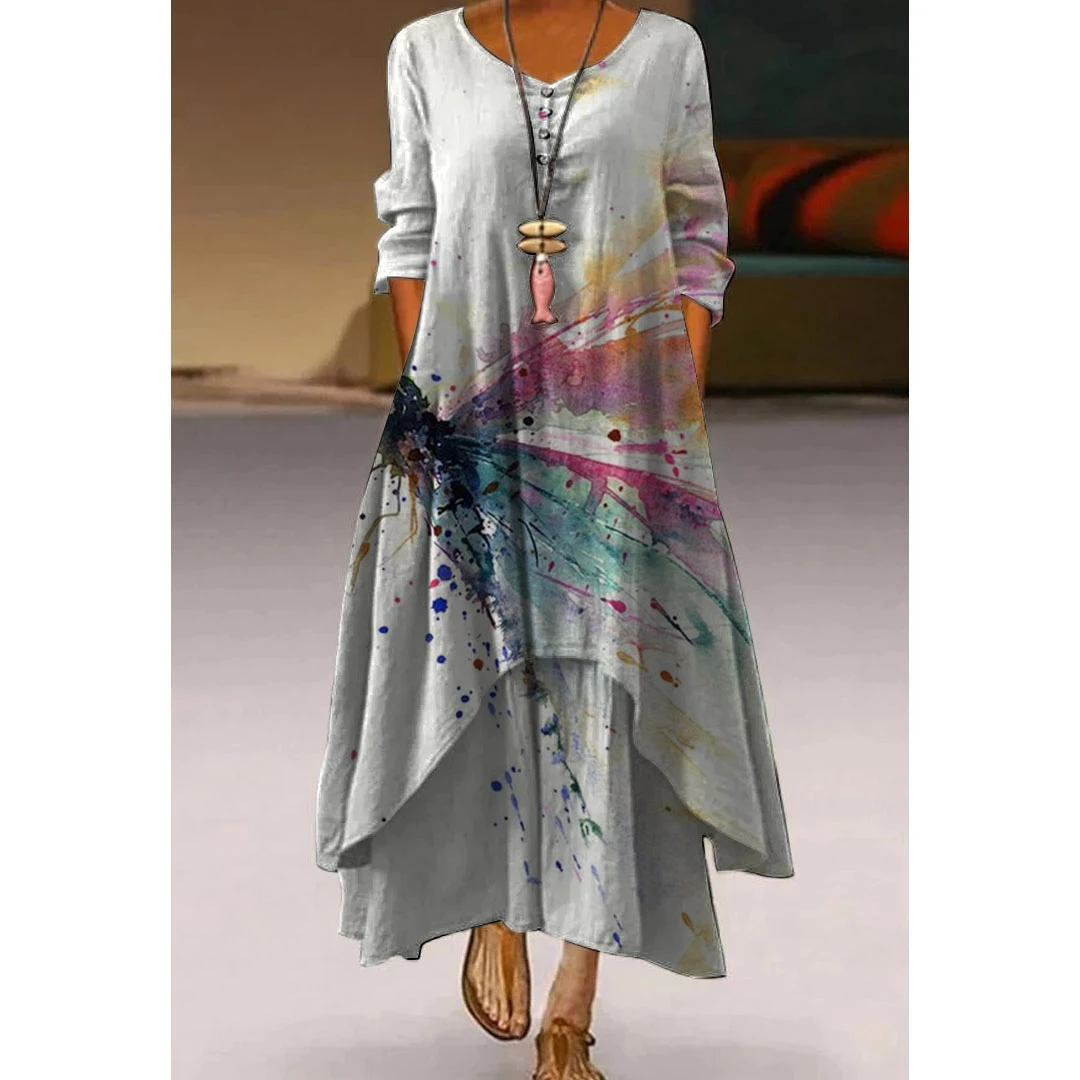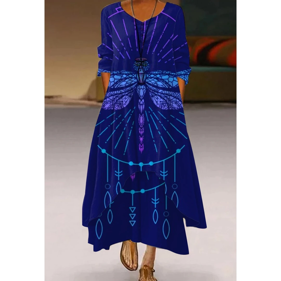 Женское винтажное платье с 3D-принтом, длинное повседневное платье ...