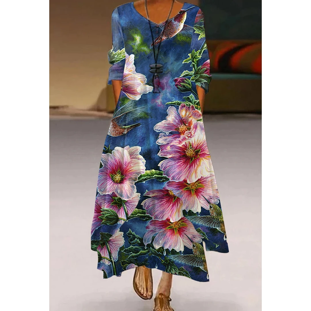 Длинное платье-макси в стиле Харадзюку с принтом природных птиц, же...