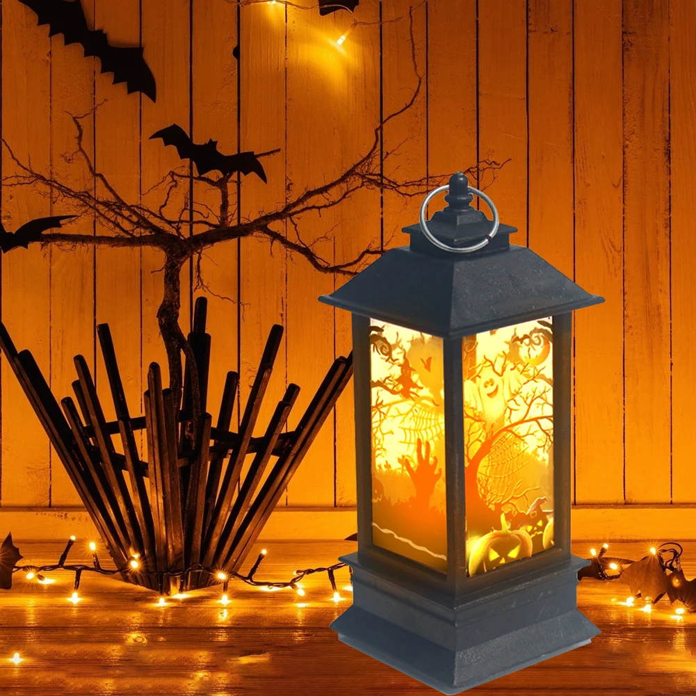 Маленький ветряной фонарь на Хэллоуин, украшение для фестиваля, светящаяся лампа, имитация пламени, маслясветильник, Домашний Настольный светящийся декор, украшения