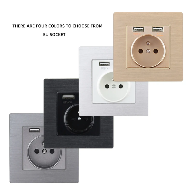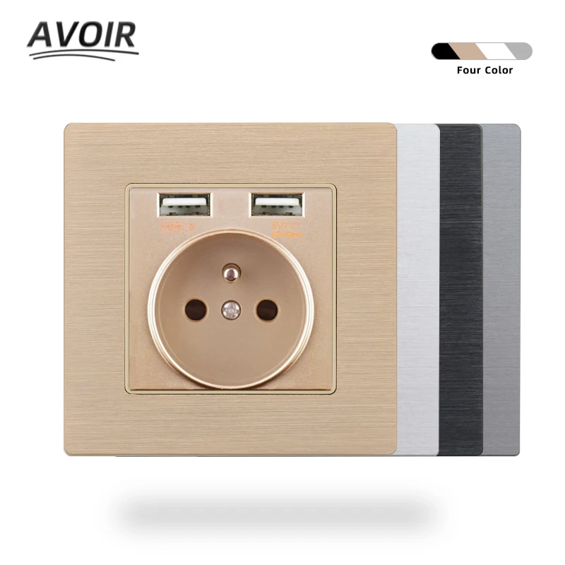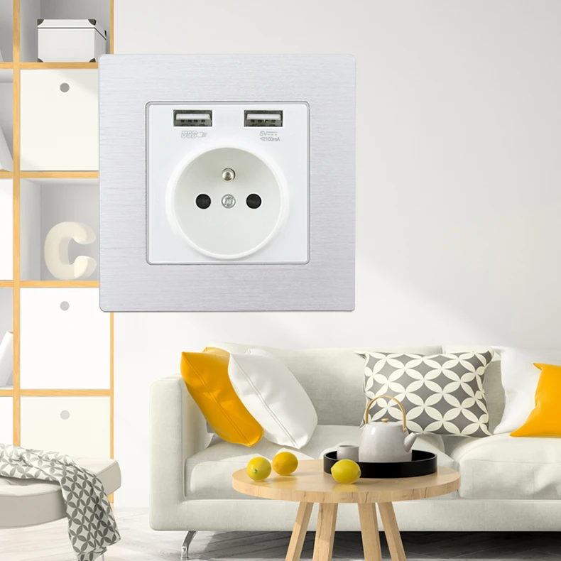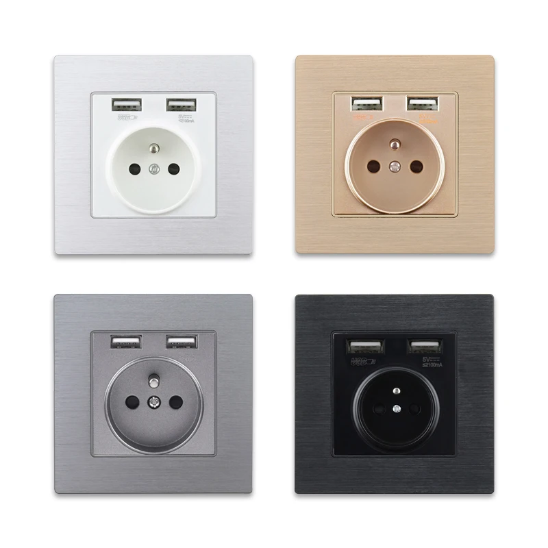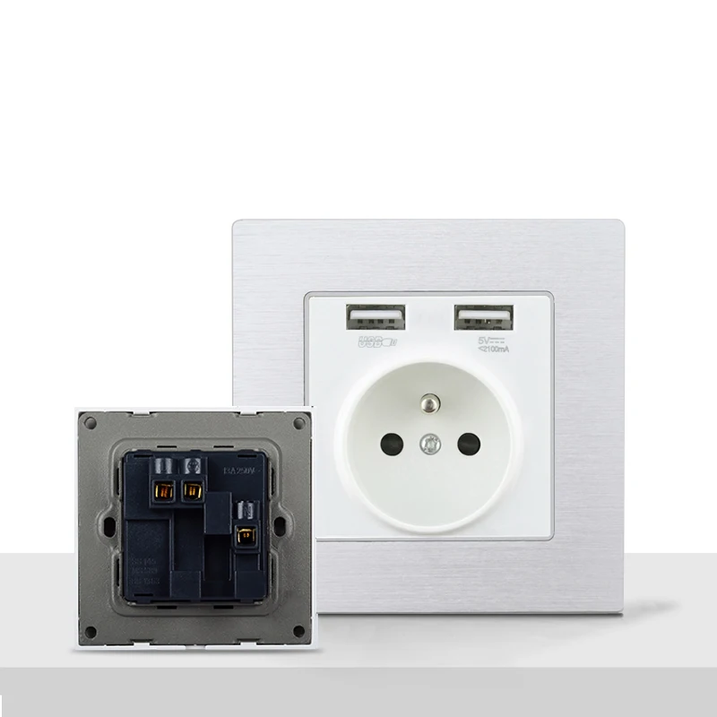 Электрическая розетка с алюминиевой матовой панелью, 86-250 В