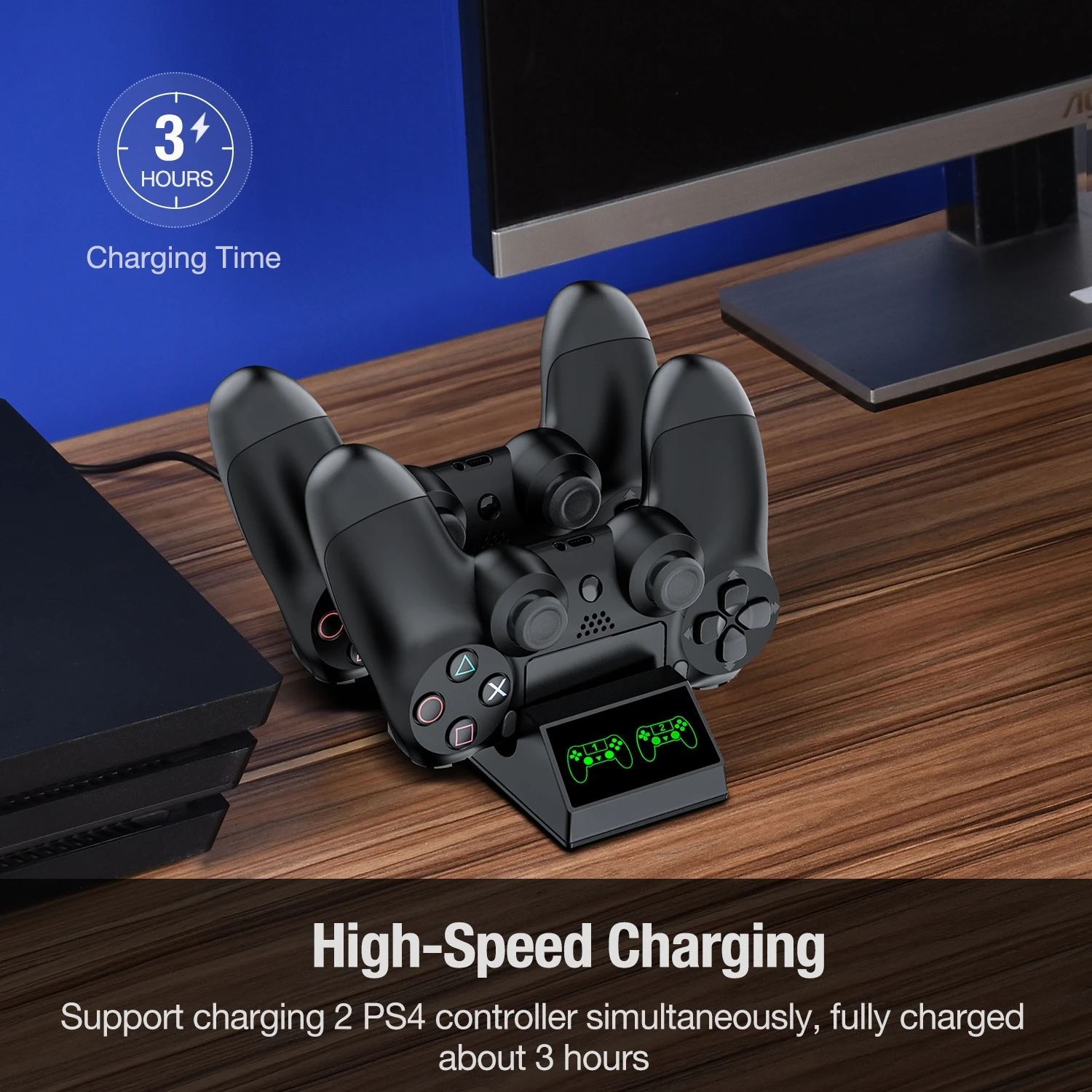 3 часа быстрой беспроводной зарядки по стандарту с 2 встроенных портами micro USB, pro зарядное устройство идеально подходит для двойного шока 4 PS4 / PS4 тонкий/PS4 Pro контроллеров, экономьте время для одновременной зарядки двух контроллеров
