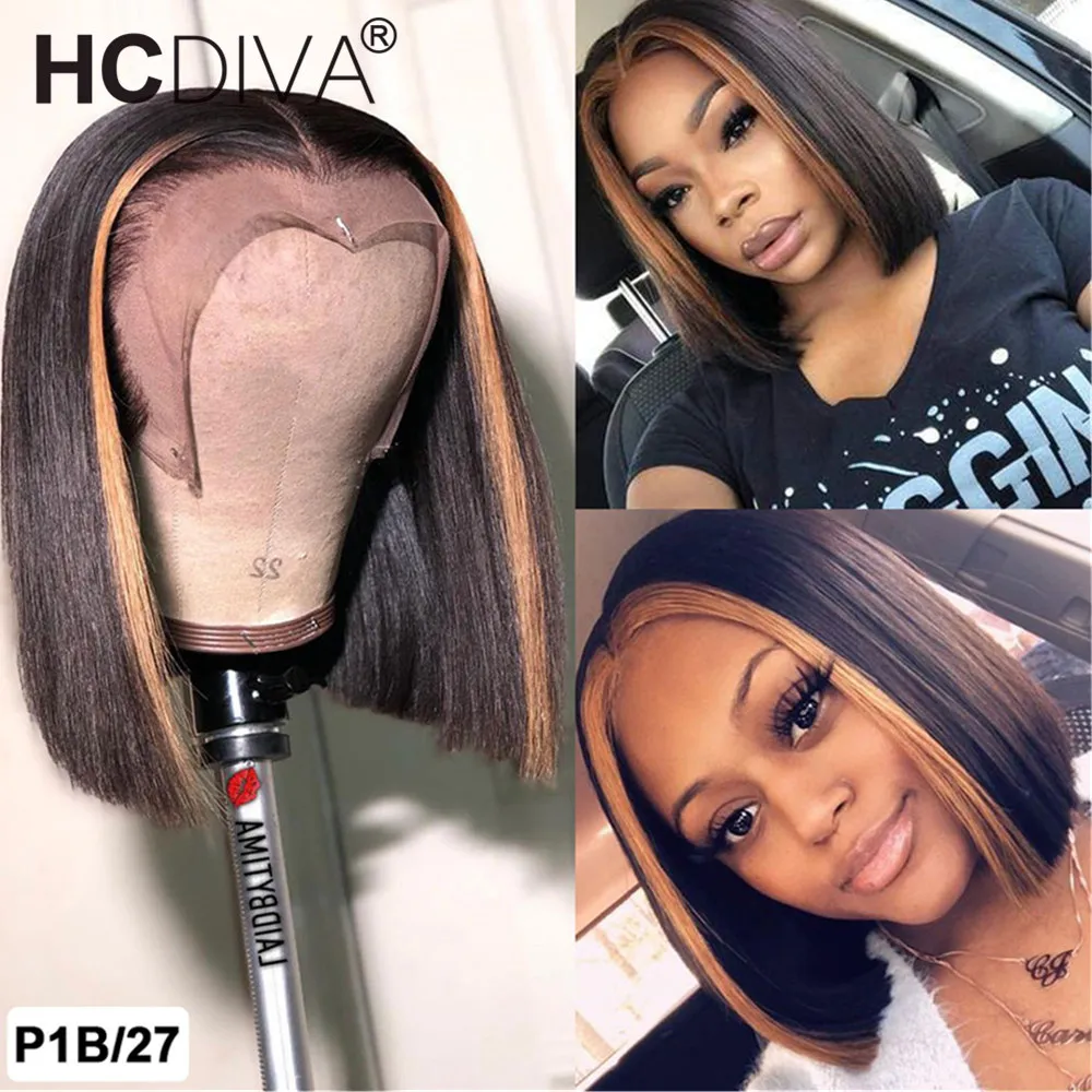 Хайлайтер Ombre боб парик перуанская прямая T часть Remy 4x4 парики...