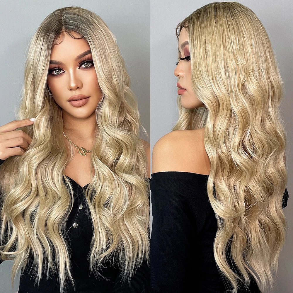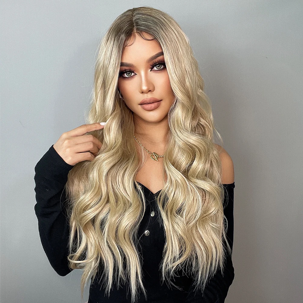 Длинные свободные синтетические волосы ALAN EATON с волнистыми кружевами спереди, парики для женщин с Омбре, коричневые, золотые, светлые, средней части, парики для косплея