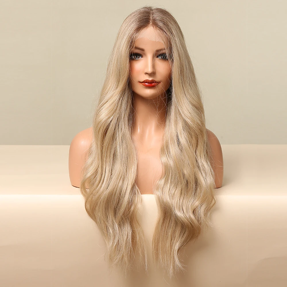 ALAN EATON, Длинные свободные волнистые кружевные Передние синтетические волосы, парики для женщин, Омбре, коричневые, золотистые, светлые, средняя часть, косплей, кружевные парики