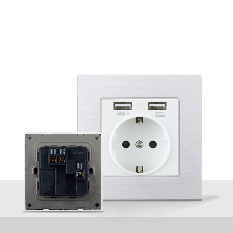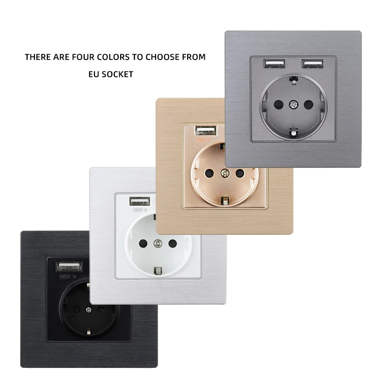 Электрическая розетка с алюминиевой матовой панелью, 86-250 В