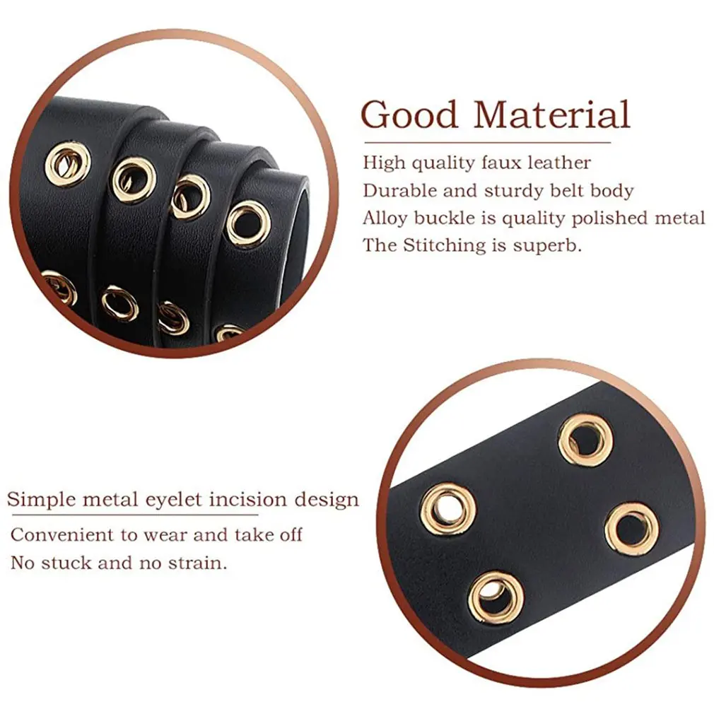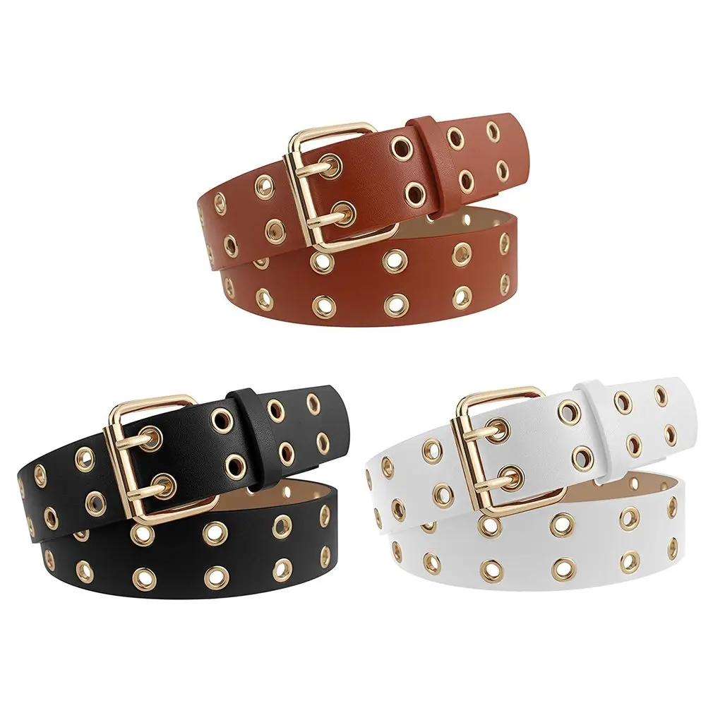 Женский кожаный ремень в стиле панк, регулируемый ремень с двойнойоднорядной пряжкой с отверстиями, декоративный ремень для джинсов