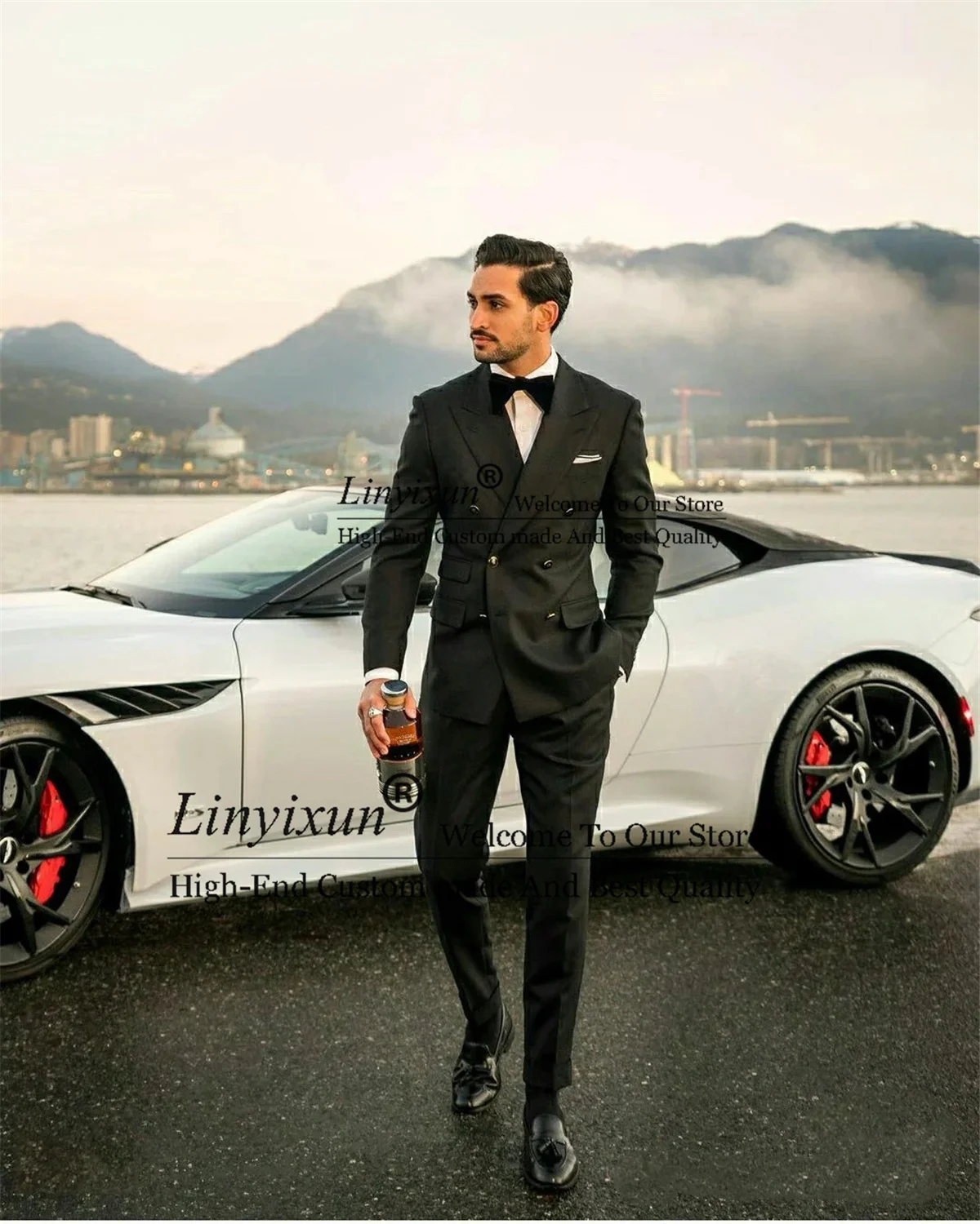 Мужские черные двубортные костюмы в полоску для свадьбы облегающие ...