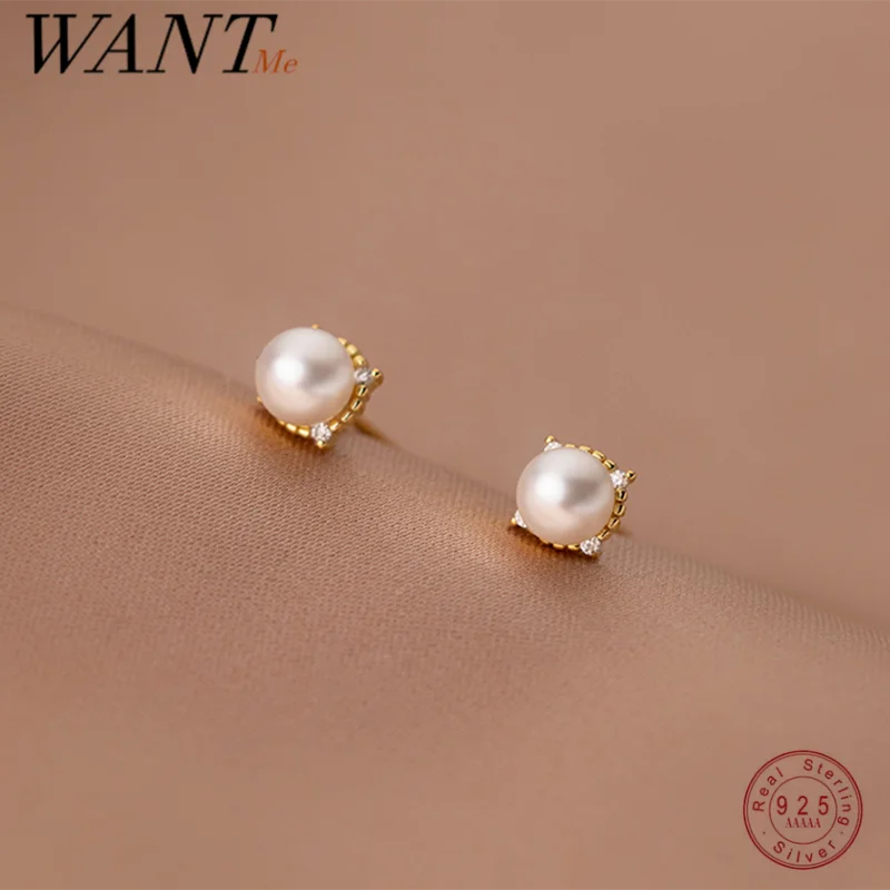 Женские серьги-гвоздики WANTME из серебра 925 пробы с бусинами в ви...