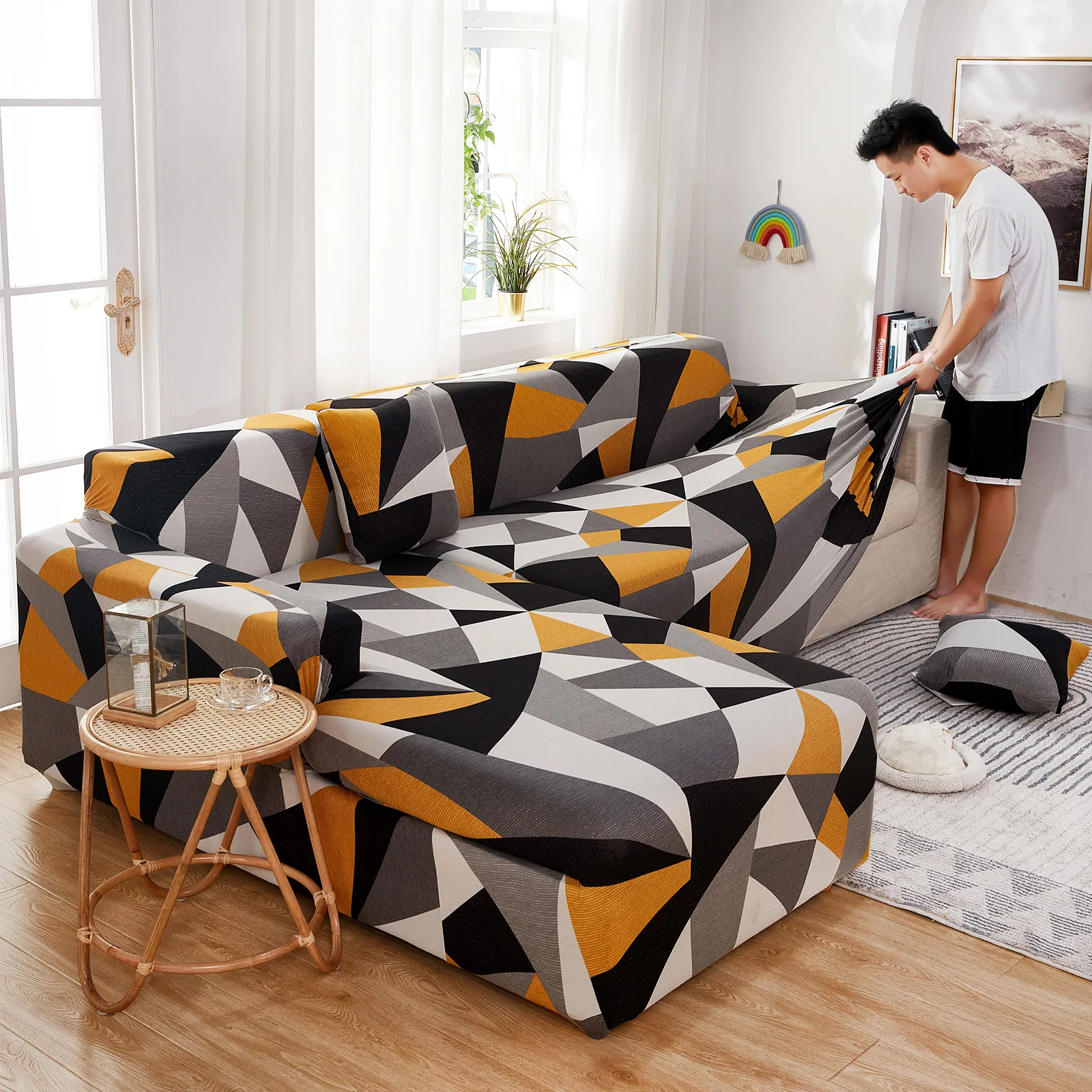 Эластичный чехол для углового дивана с геометрическим рисунком для гостиной, чехол для дивана, секционный L-образный чехол для дивана, шезлонг для дивана, купить 2 штуки