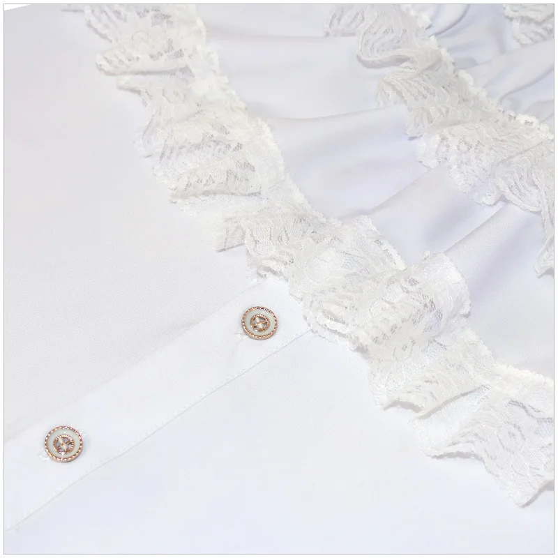 Белая кружевная рубашка в стиле стимпанк с оборками и воротником-ст...