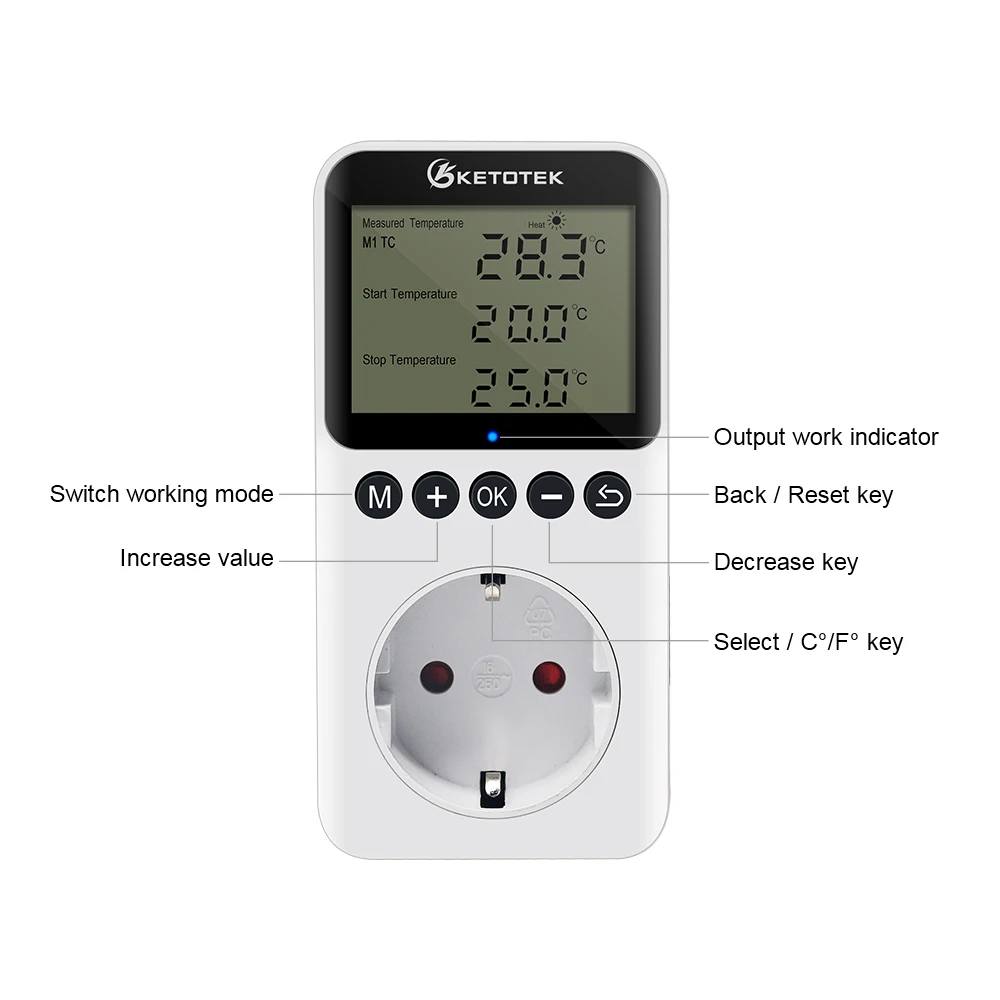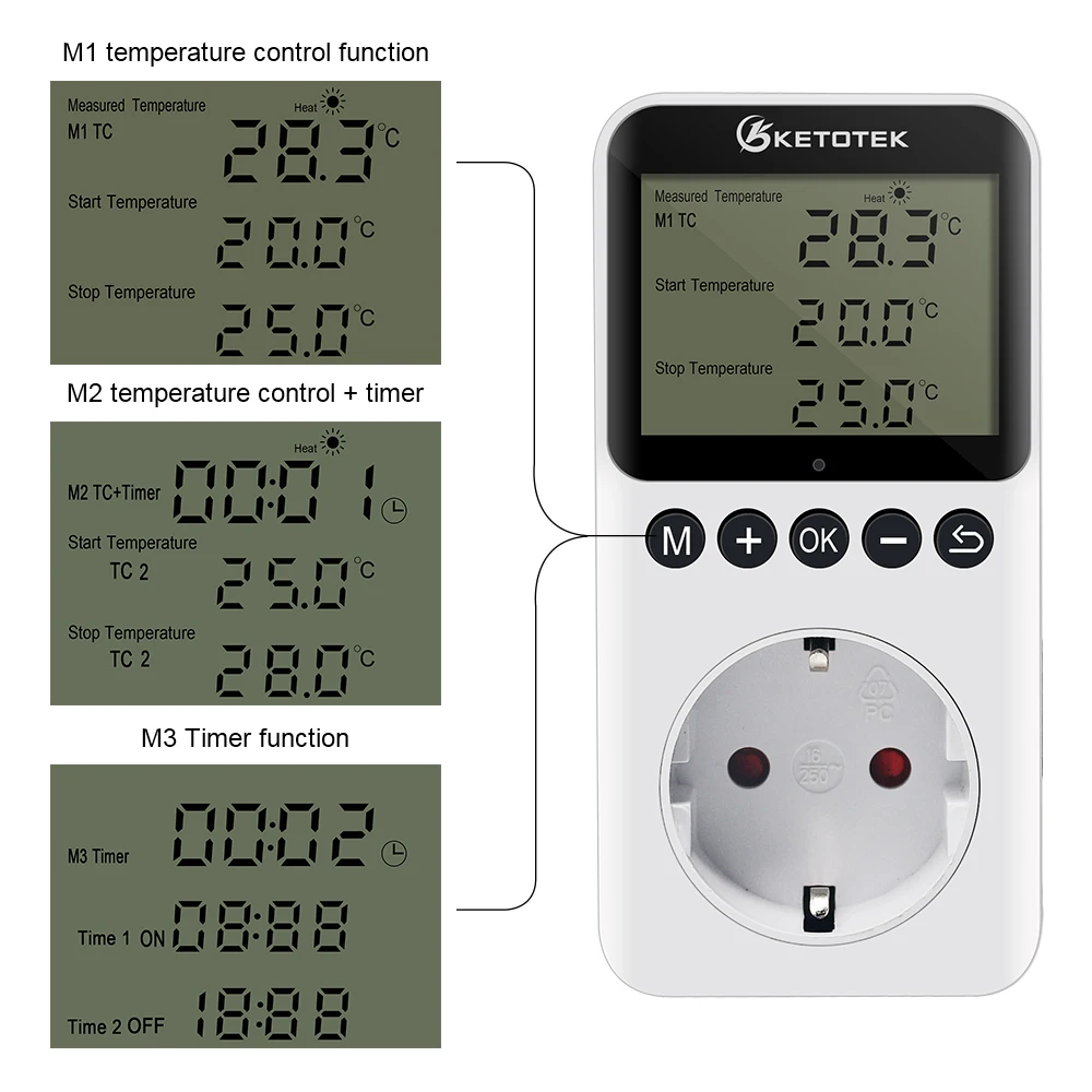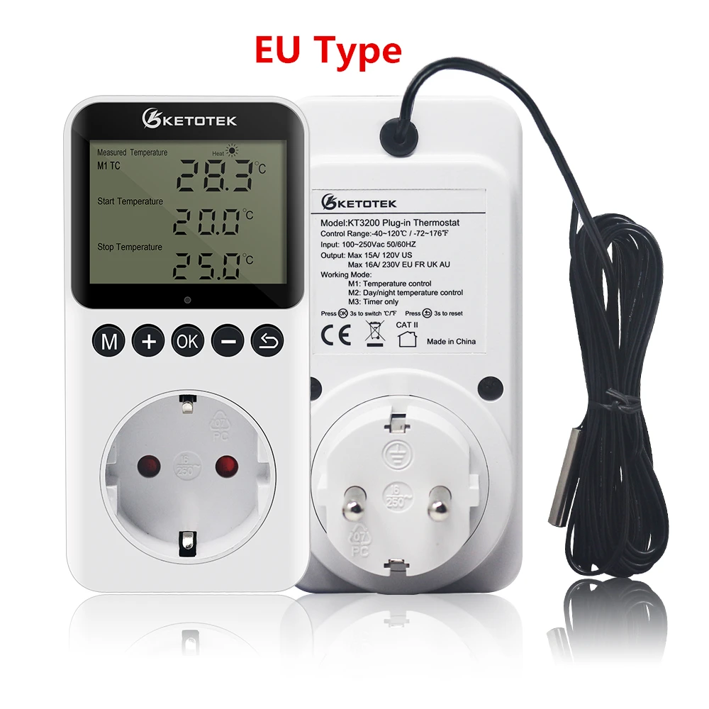 Цифровой термостат Ketotek, термостат для дня и ночи, с вилкой Стандарта EUUKUSAUFR, 230 в 16 А