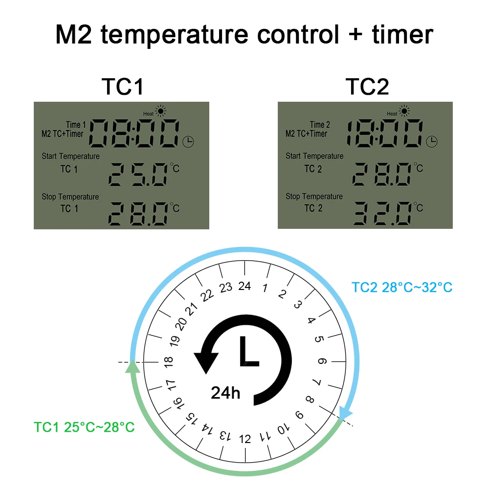 2. Он также имеет функцию времени для установки дневной и ночной температуры независимо.