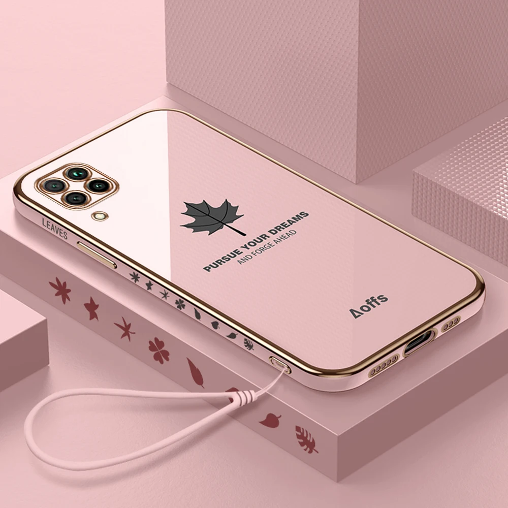 Чехол-накладка для Huawei P30, P40 Lite, Nova 8, 5T, Honor 50, Se, 20, 30S, View 30 Pro Plus, с гальваническим покрытием, со шнурком, с защитой камеры