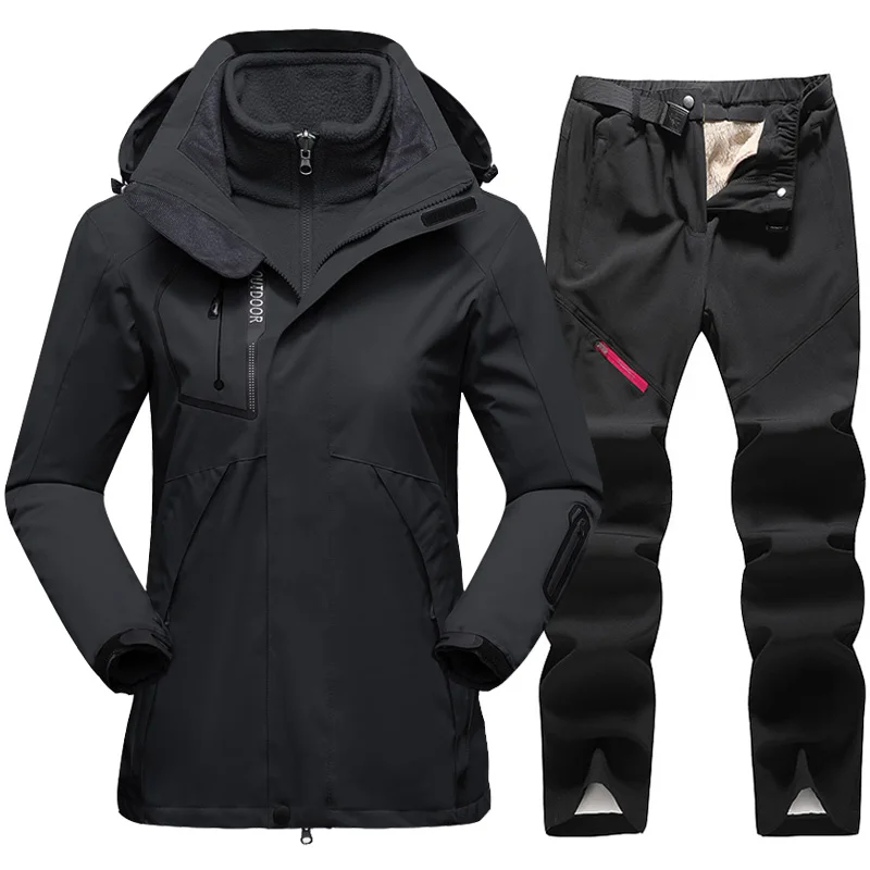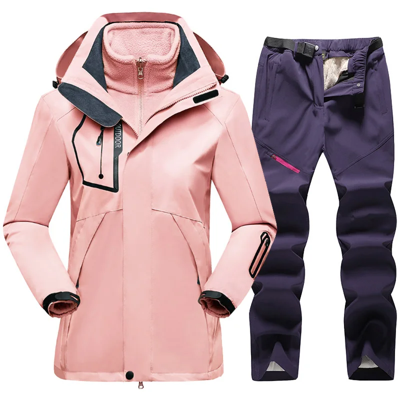 Лыжная куртка и брюки для женщин 2 в 1 плотный теплый лыжный костюм...