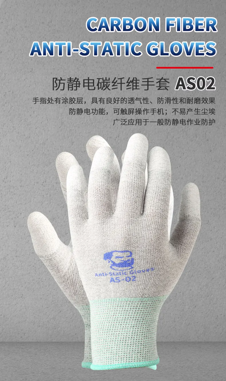 Антистатические перчатки MECHANIC AS02, эластичные противоскользящие защитные перчатки с полиуретановым покрытием, углеродное волокно, размер LM