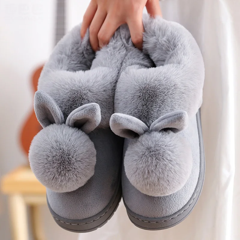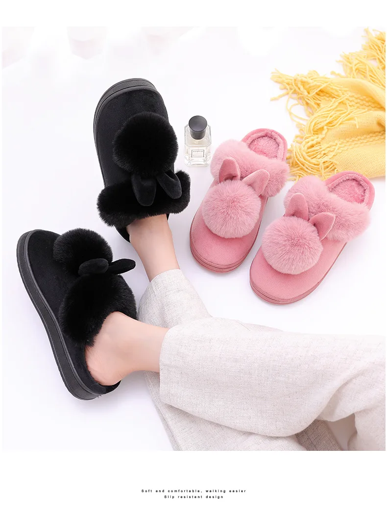 Осенне-зимние пушистые тапочки, новинка 2021, домашние тапочки с кроличьими ушками, теплая обувь, женские милые плюшевые Тапочки