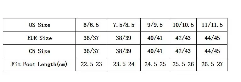 36/37 Размер подошвы 230 мм38/39 Размер подошвы 240 мм40/41 Размер подошвы 250 ммПожалуйста, выберите правильный размер в соответствии с нашей детальной информацией о размере товара.Не ориентируйтесь на размер вашей страны. Или просто выберите неправильный размер.Рекомендации по размеру: если стопа широкая или полная, мы советуем выбирать на один размер больше.Если вы все еще не можете выбрать размер, вы можете связаться с нашей службой поддержки клиентов, прежде чем разместить заказ.