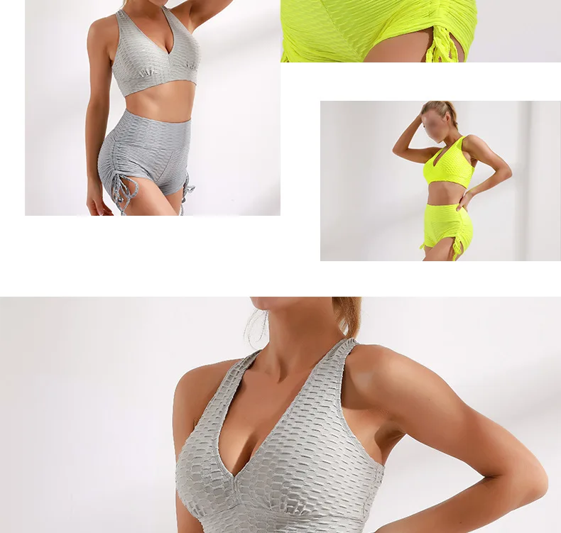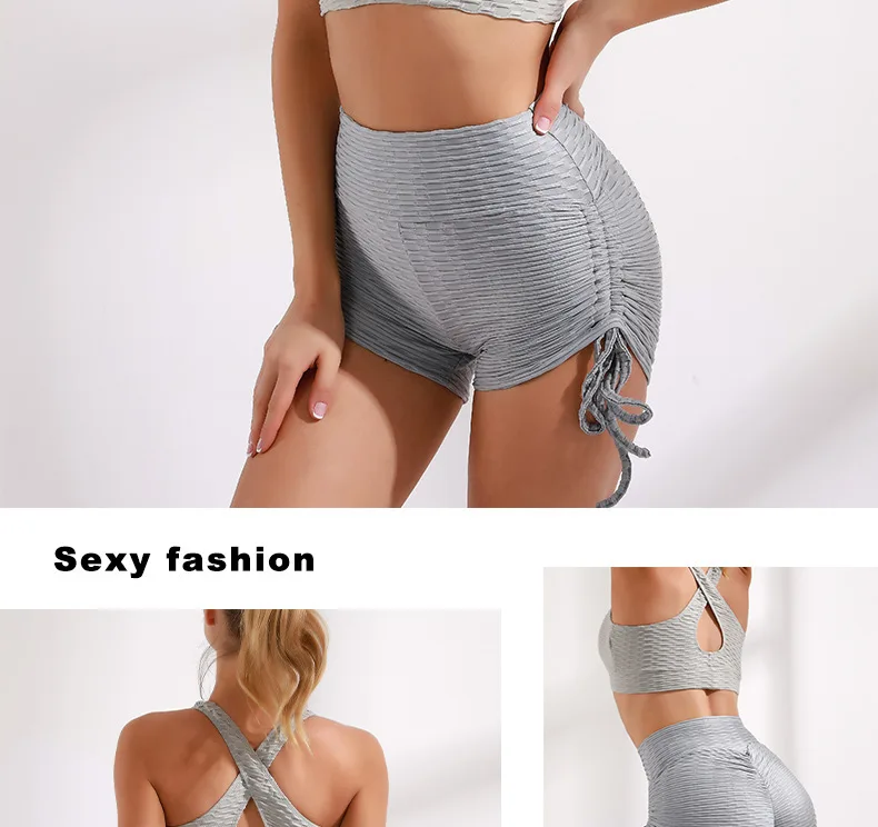 Спортивный костюм для йоги, Женский жаккардовый однотонный бюстгальтер пуш-ап без косточек, леггинсы, шорты
