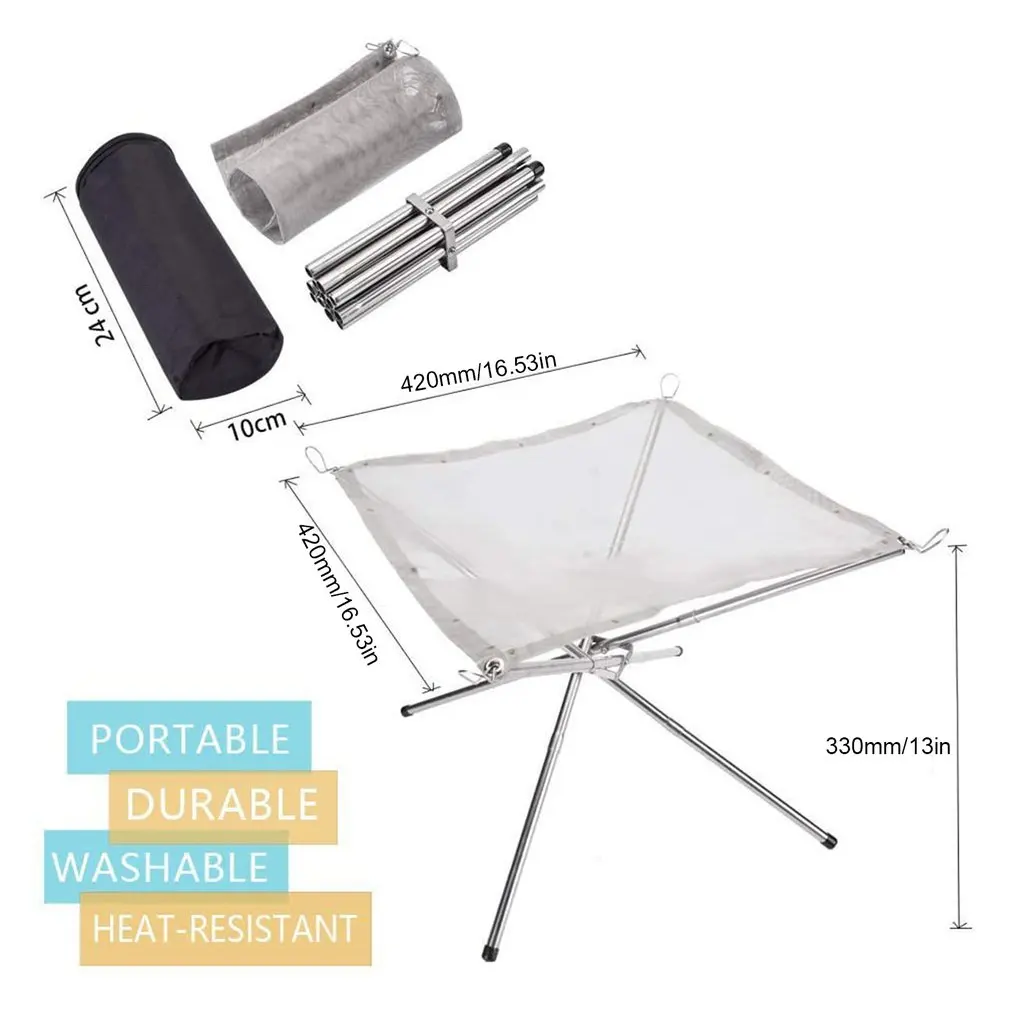 Костра для кемпинга, подставка для дровяной плиты, из нержавеющей стали, Складная сетка, уличный деревянный обогреватель