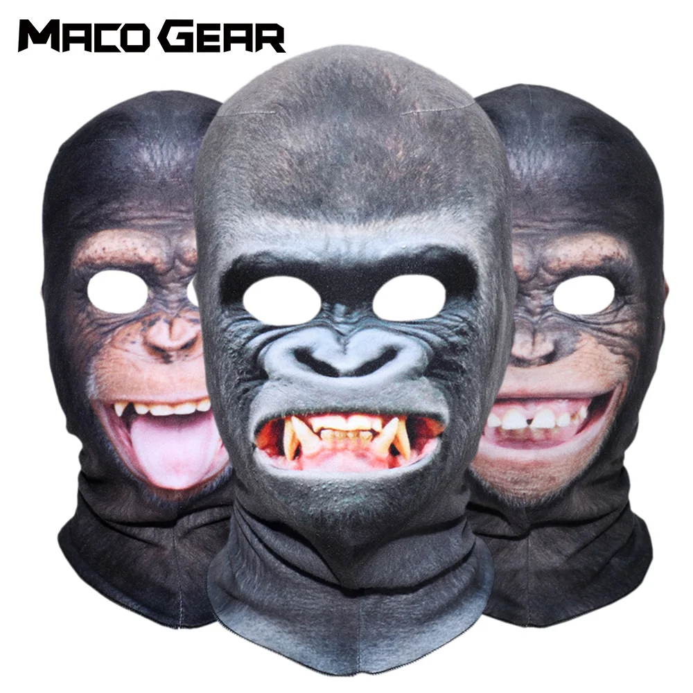 Забавная Балаклава для велоспорта и сноуборда с 3D изображением животных, орангутан, маска на все лицо для охоты, походов, рыбалки, катания на лыжах, шапка с подкладкой, мужской шарф
