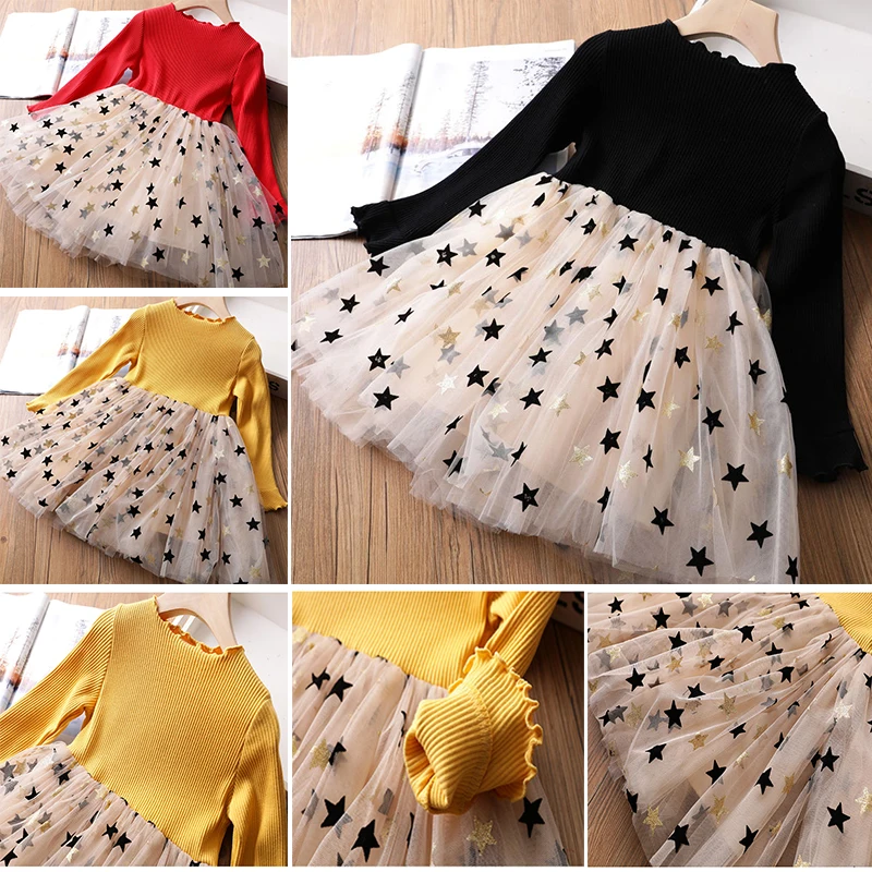 Одежда для девочек блестящие шифоновые платья со звездами для детей...