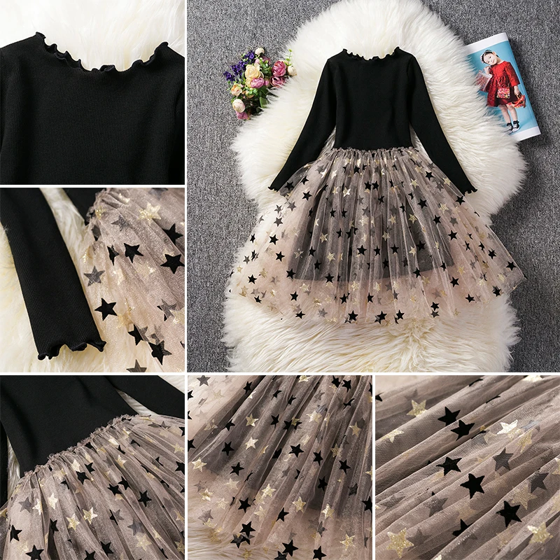 Платье принцессы для девочек, платья с длинным рукавом и принтом зв...