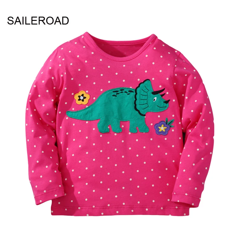 Новинка от SAILEROAD, футболки с длинным рукавом с изображением животных и носорогов, осень 2021, одежда для девочек, блузка для девочек, модные топы для детей