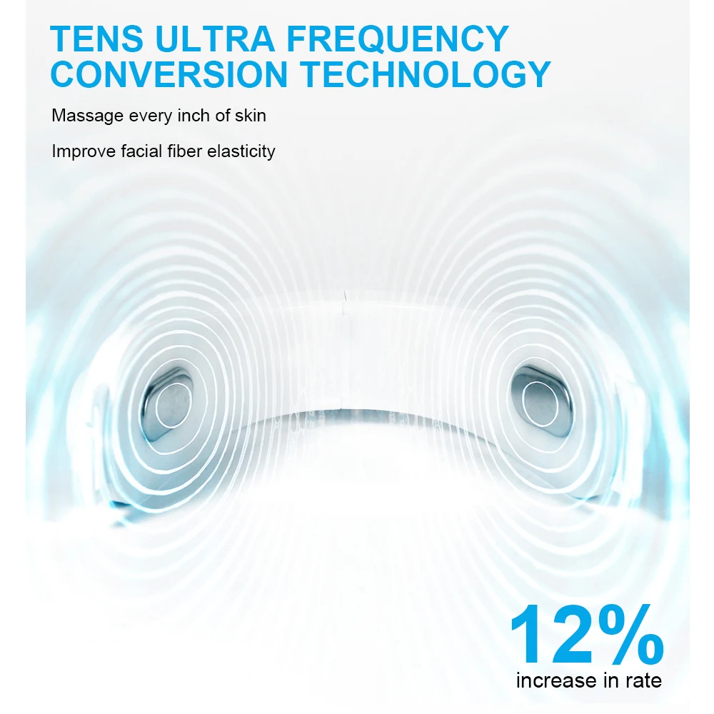 2.TENS Микро ток технологии, красный свет + синий свет, 3 МГц радиочастотной энергии для активации регенерации коллагена. Глубоко проникает в дерму для улучшения восстановления кожи, повышения эластичности и цвета лица, омолаживания кожи.