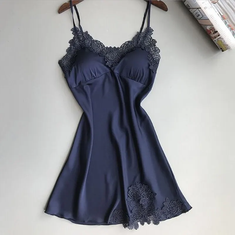 Женские ночные рубашки, атласное кружевное Сексуальное белье, летне...