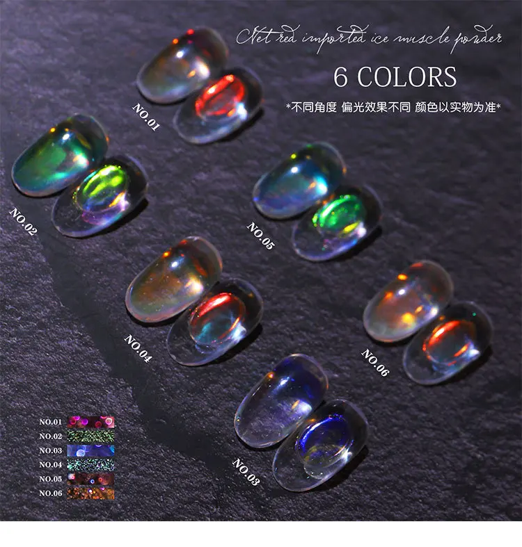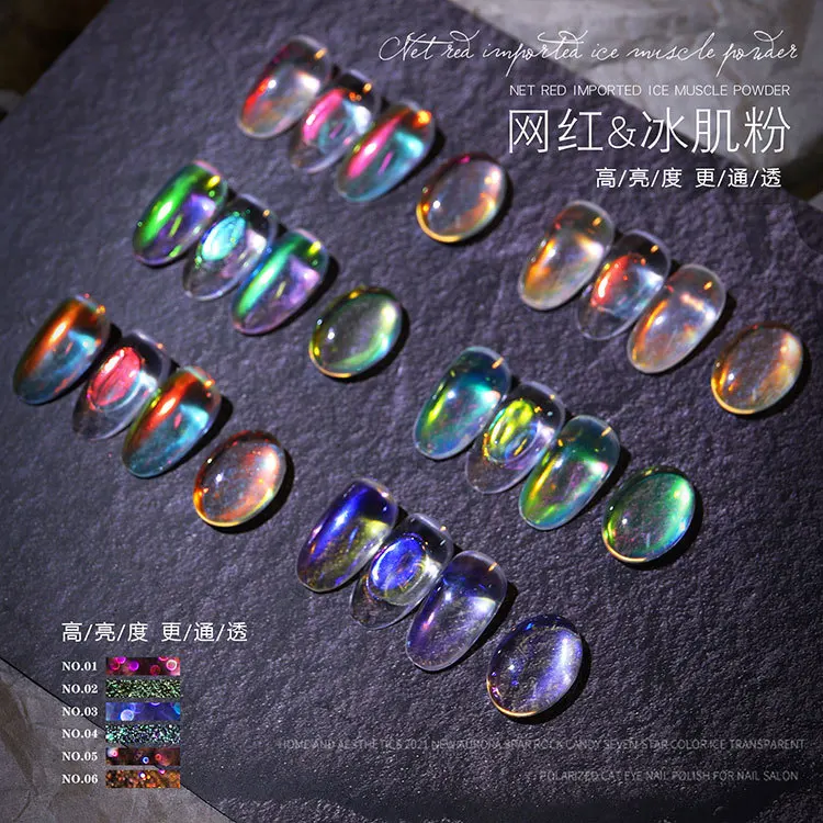 Ледяной мускул многоцветный с голографическим блеском зеркальный Aurora неоновый порошок пыль Хамелеон дизайн ногтей хромовый пигмент погружение порошок украшения