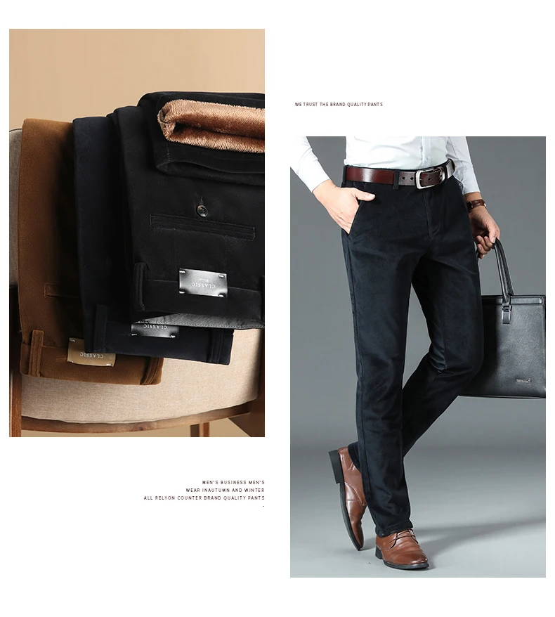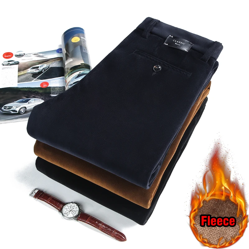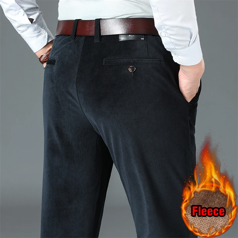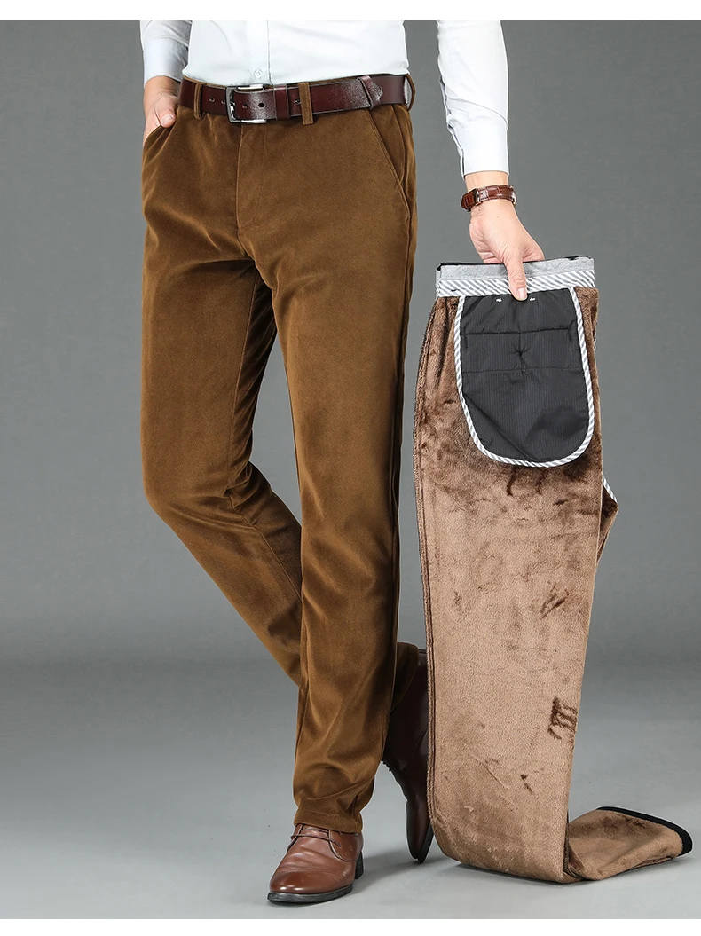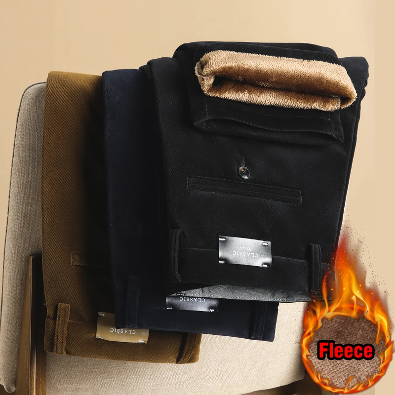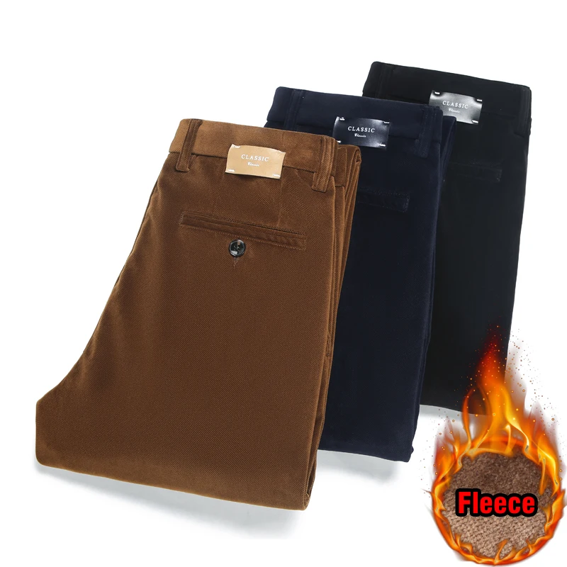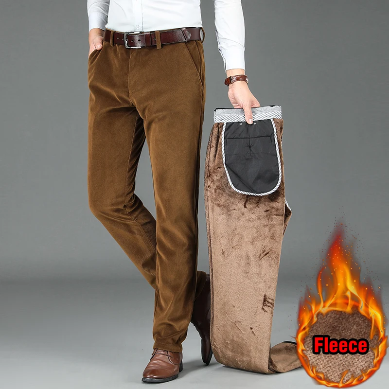 Мужские вельветовые брюки, теплые эластичные брюки на флисе, для зимы