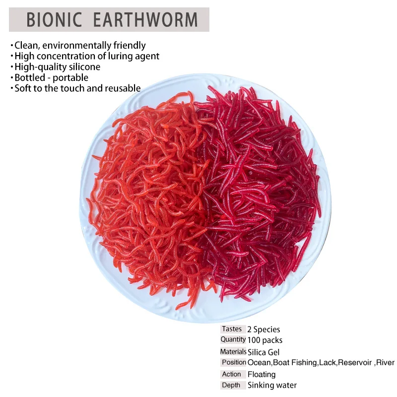 100 шт.лот реалистичный красный червь Isca мягкий рыбный запах дожд...