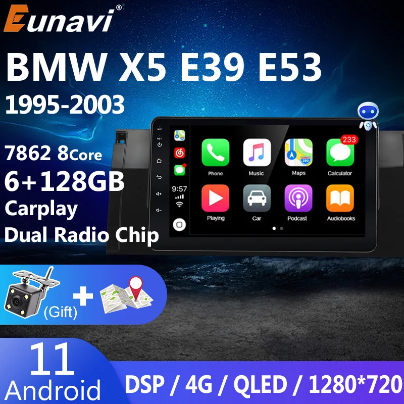 Eunavi 4G 1280*720 Android 11 автомобильный Радио мультимедийный видео плеер для BMW X5 E53 E39 1995 - 2003 головное устройство 9 дюймов QLED навигация GPS, DVD