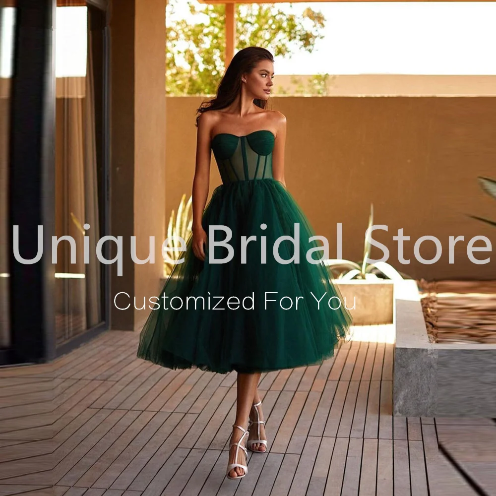 Платье-корсет длиной ниже колена, из тюля темно-зеленого цвета, на заказ, 2021