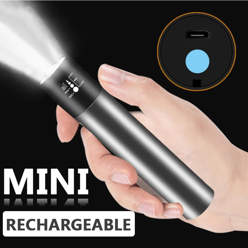 Светодиодный мини-фонарик Litwod, водонепроницаемый портативный фонарь с телескопическим зумом и зарядкой от USB, 3 режима освещения