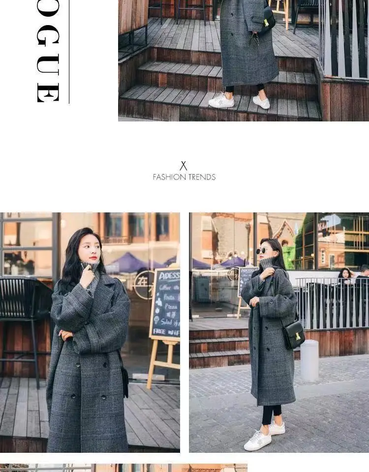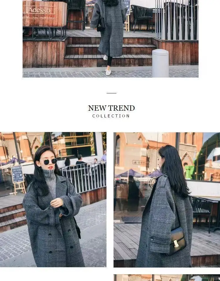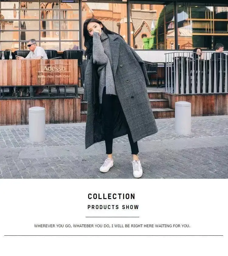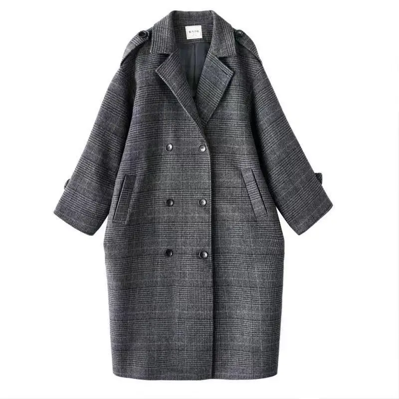 Женское длинное пальто, корейское шерстяное пальто в клетку и полоску в стиле преппи, уличная одежда, модное зимнее теплое плотное пальто для женщин, 2021