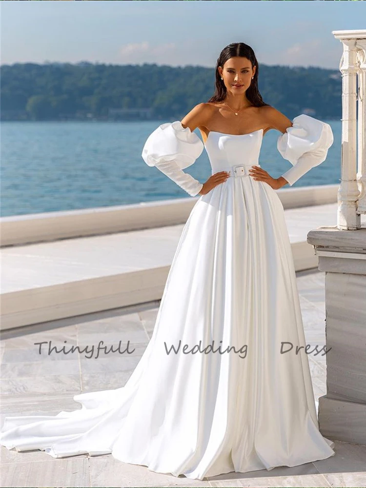 Tinyfull, простое шелковое искусственное свадебное платье со съемны...