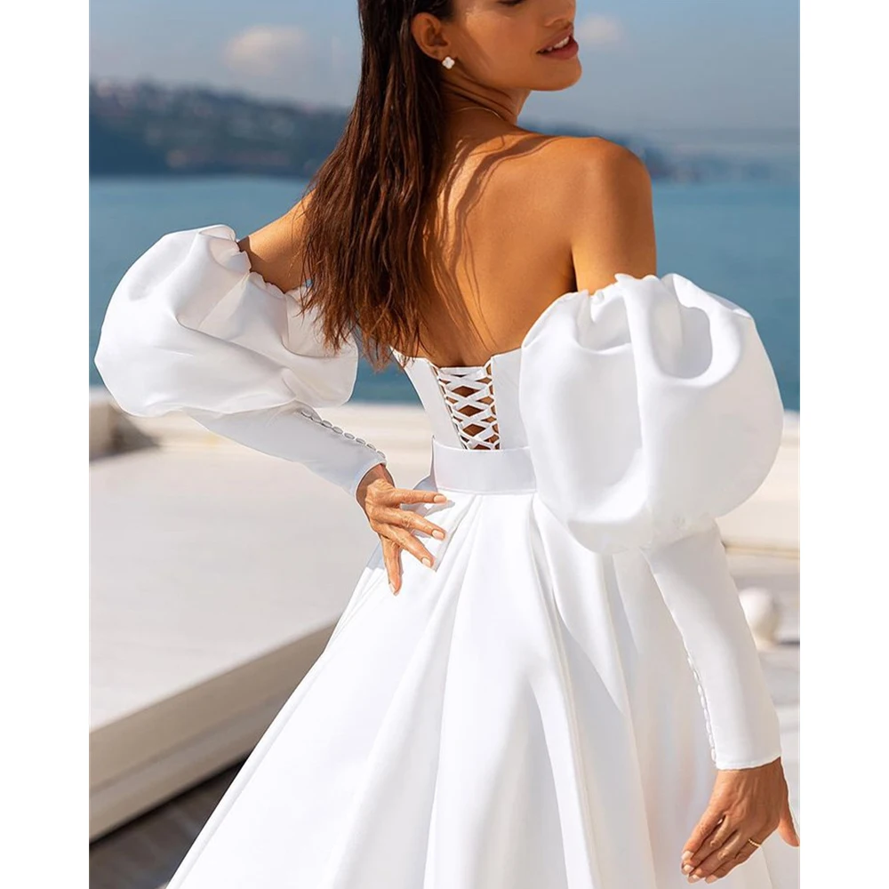 Элегантные пляжные свадебные платья трапециевидной формы с длинными рукавами, модель 2021 года, свадебные платья для вечеринки в стиле бохо, вечерние нее платье принцессы