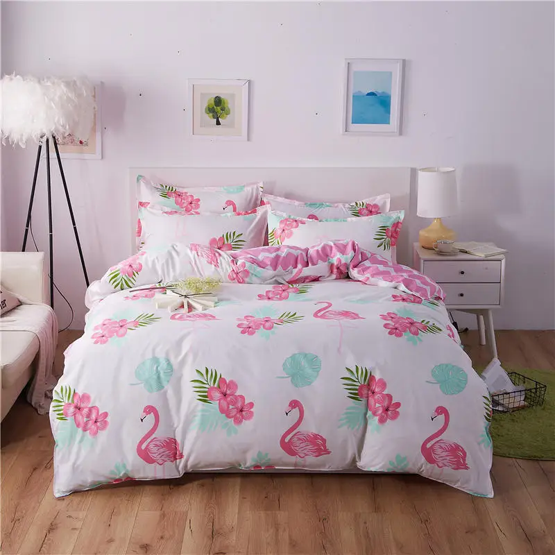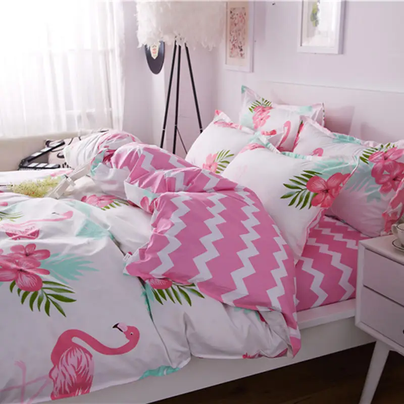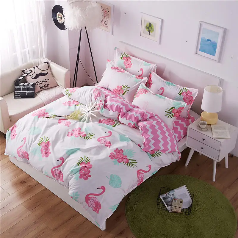 Комплект постельного белья из 34 предметов, с милым мультяшным принтом фламинго, пододеяльник, простыня, наволочка, домашний текстиль