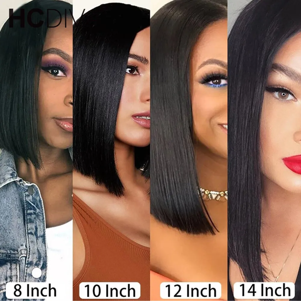 Короткие парики боб, прямые парики из человеческих волос на сетке спереди для женщин, предварительно выпрямленные Детские волосы, парик на сетке 4x4, прозрачный парик на сетке