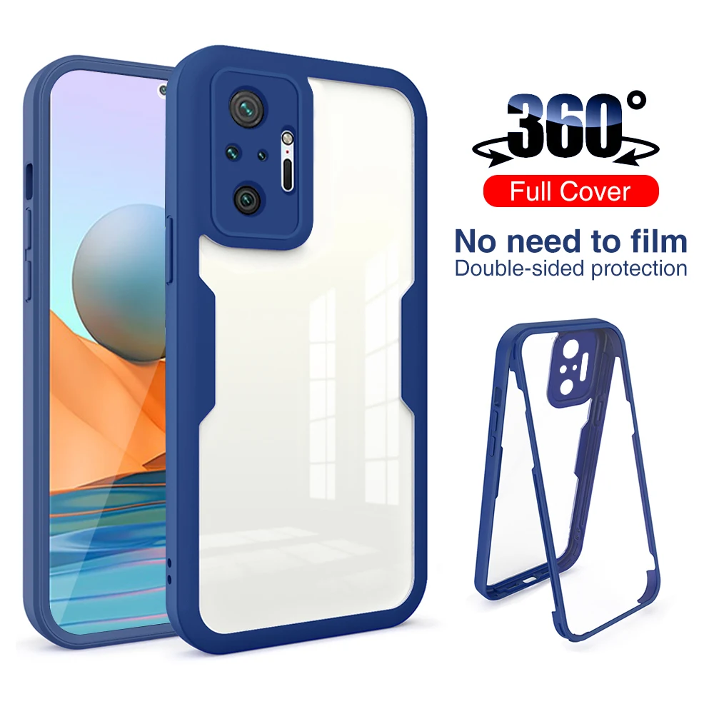 Чехол с полной защитой корпуса на 360 градусов для Redmy Note10, Redmi Note 10 Pro, 10S, 10T, чехол из ТПУ, передняя и задняя части, ударопрочный чехол из поликарбоната