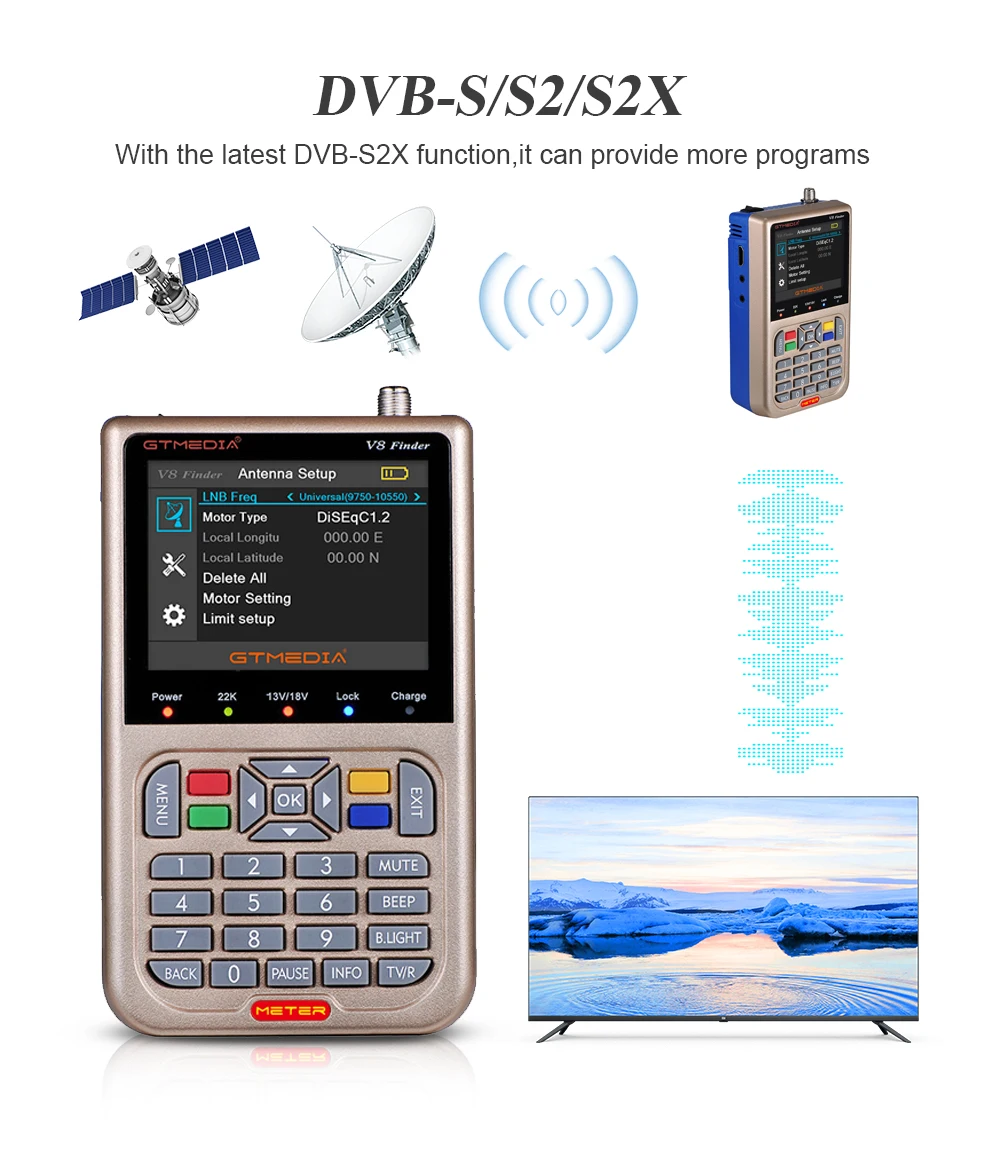 GTMEDIA V8 Finder метр DVB-S2S2X цифровой спутниковый SatFinder HD ...