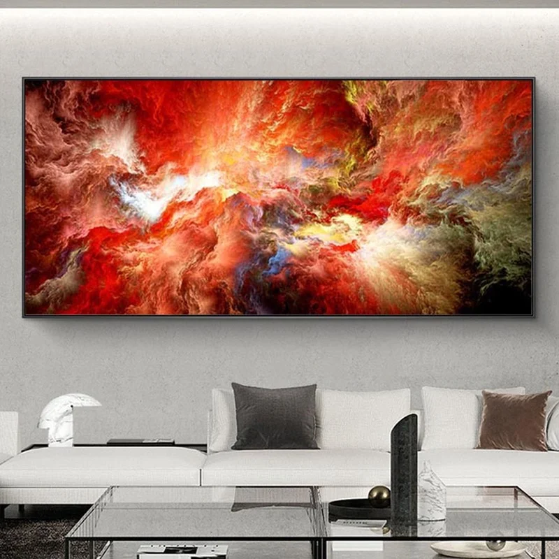 Белая фиолетовая облако, холст, современное искусство, красная масляная живопись, абстрактный огонь, облако, независимая комплектация, Настенная картина для гостиной, Постер и печать